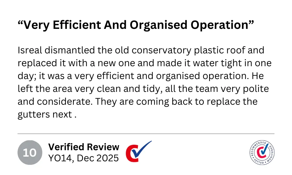"Hi I'm Isreal and I've been roofing in North Yorkshire for over 14 years. I started this business with one goal - to give homeowners a straight, honest service without the hard sell or hidden costs.